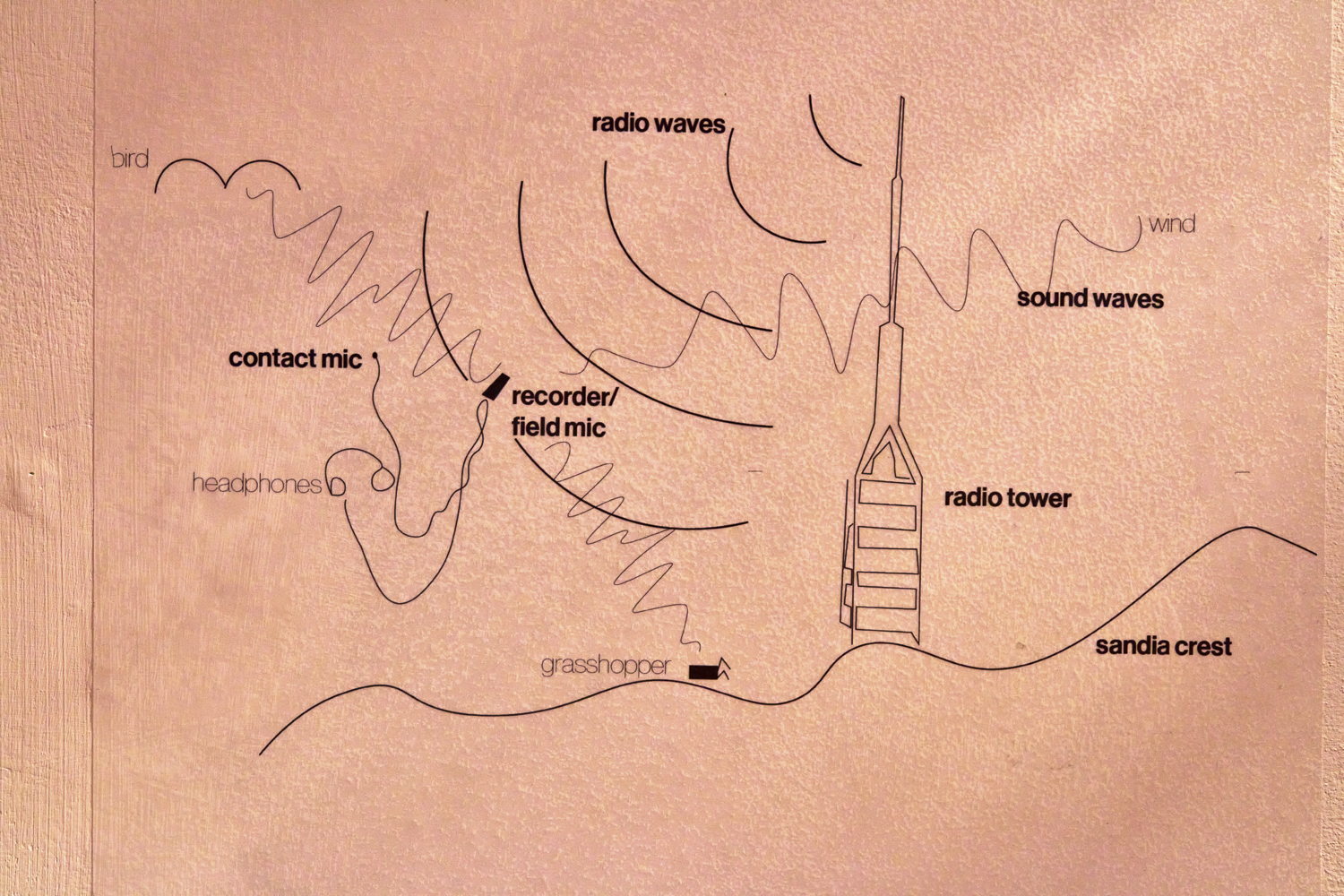 they received an MFA from the University of New Mexico. Their practice stems from an interest in the ecologies that extend beyond the ranges of human sensory spectra, and from a desire to regularly molt and regrow perceptual habits. With an understanding that these habits are taught and learned, they seek to deprioritize the capitalist logics that fuel objectification, ecocide, violence and apathy– instead looking to more-than-human cohabitants as teachers of what else is possible, and already real. Their work takes form through a push-and-pull between multi-sensory research and installation–combining sound, sculpture, video and found material to illuminate the place-making intelligence of more-than-human cohabitants. The focus of this multi-sensory research spans from plants and animals, and the hyperlocal ecosystems held within a handful of dust, to the lives and ecological memory held within the steel, electricity water and stone that make up contemporary infrastructures.